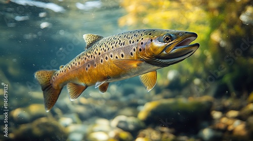 Naklejka premium A salmon swims gracefully through a river, showcasing the beauty of nature...