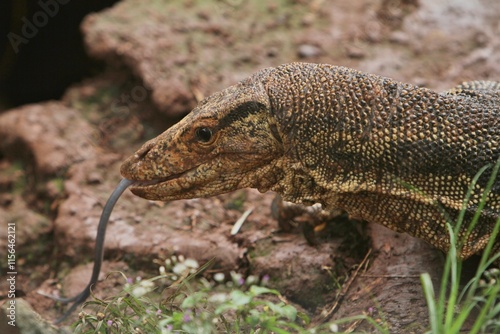 © Pitokung, Obraz premium a salvator lizard surveying the surroundings from the rocks