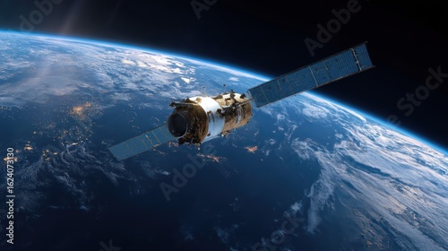 © Dara, Obraz premium A satellite orbiting the Earth, with a view of the planet's surface below.