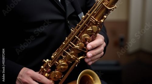 © SEYYAH, Fototapeta premium A saxophonist performing music at a jazz concert