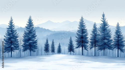 Naklejka premium A Scandinavian wallpaper of stylized pine forests in crisp white on a pale blue background