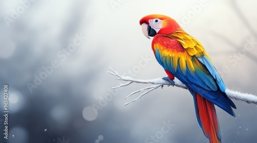 © Penatic Studio, Fototapeta premium A Scarlet Macaw Perched on a Branch with a Blurred Background