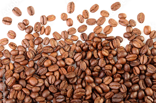 © AndyEmel, Naklejka premium a scattering of coffee beans on white background