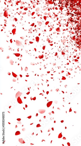 Fototapeta premium A scattering of red rose petals against a white background, creating a romantic and elegant feel.