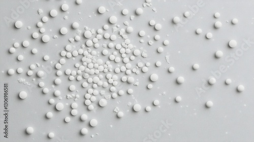 © Fora, Fototapeta premium A scattering of small white pills on a neutral gray background, simple and clean, ultra-detailed, 8k