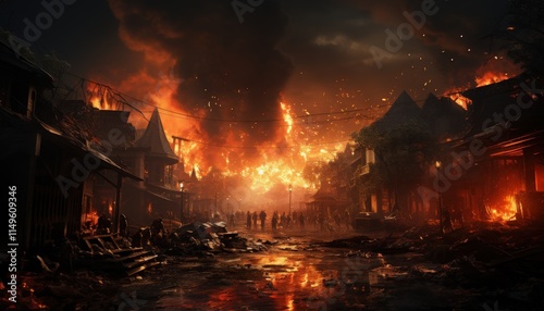 © Beauty IG, Obraz premium A scene depicting the impact of war on civilians