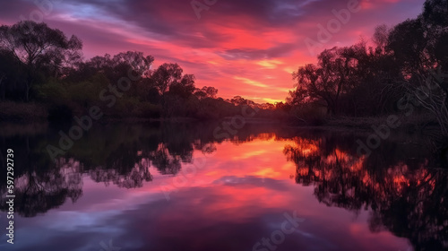 © SANGHYUN, Obraz premium A scene in which the entire pink sky is reflected in the water. AI generative