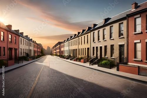 Naklejka premium a scene of townhouses nestled in a bustling cityscape, capturing the energy and vibrancy of urban life right at the doorstep.