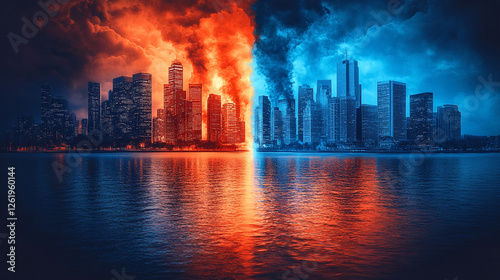 Obraz premium A scene symbolizing environmental disaster with factory smoke polluting the...