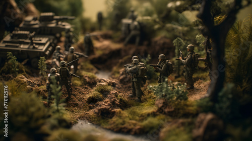 © Oleksandr, Obraz premium a scene with a bunch of miniature soldiers and greenery