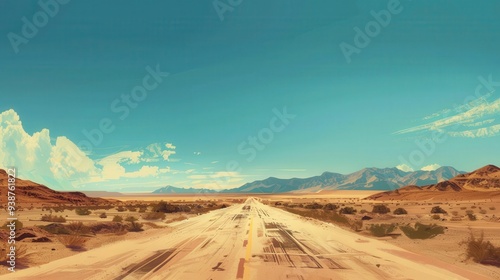 Naklejka premium A scene with two roads in the desert, one of which appears to have a lot of...
