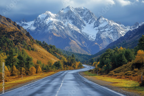 Naklejka premium A Scenic Mountain Highway with Sharp Turns Steep Cliffs and Breathtaking Vistas
