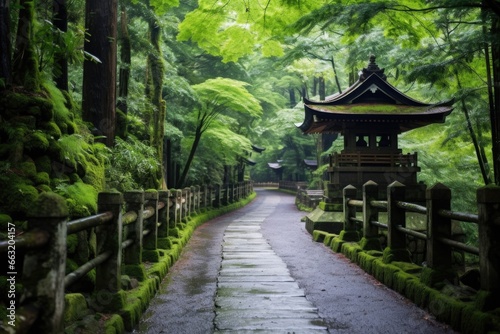 Fototapeta premium a scenic mountain path leading towards a shrine