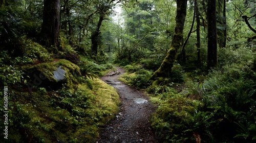 © RANO AKTER SANTA, Obraz premium A scenic path winds through a dense, green forest