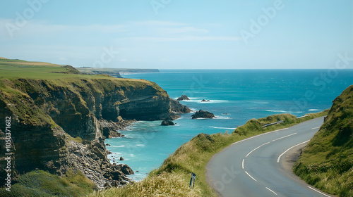 Fototapeta premium A scenic road trip through winding coastal cliffs