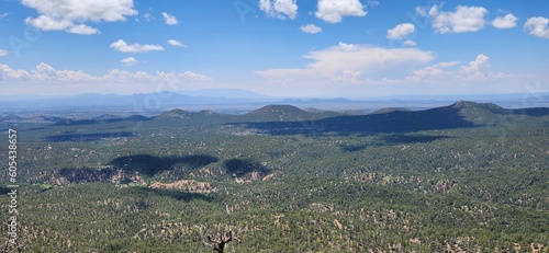Naklejka premium A scenic view from the summit of Shaggy Peak in Santa Fe National Forest, New Mexico.