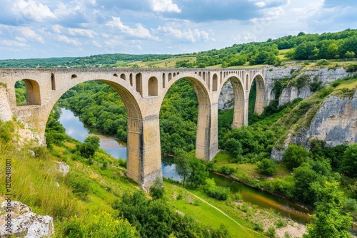 © Dina, Fototapeta premium A scenic view of a historic stone viaduct