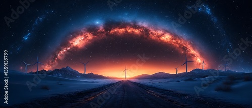 © Komanda, Naklejka premium A scenic view of a road beneath a starry galaxy sky