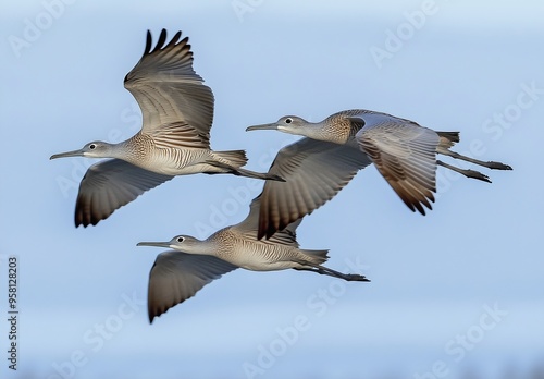 Obraz premium A Scenic View of Birds in Flight Against a Blue Sky