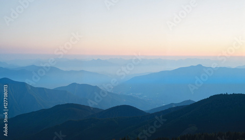 © Valeriy, Fototapeta premium A scenic view of mountains at dusk.
