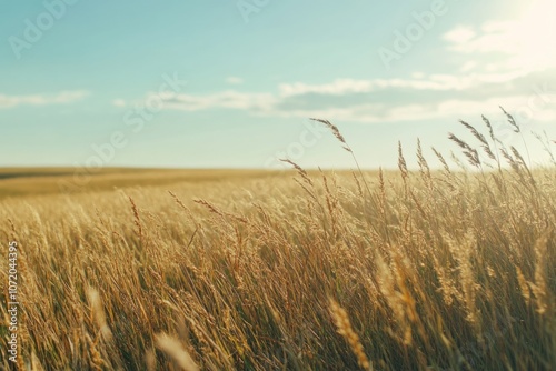 Fototapeta premium A scenic view of tall grass with the sun shining in the background, perfect...