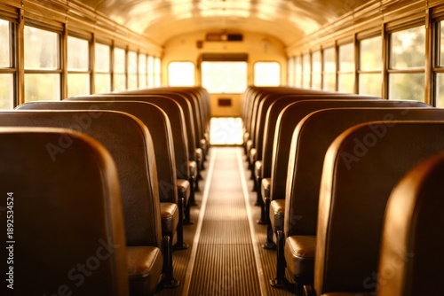 © SweetCommercial, Obraz premium A school bus with empty seats