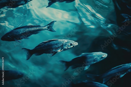 © MrHamster, Fototapeta premium A school of fish swimming through turquoise water