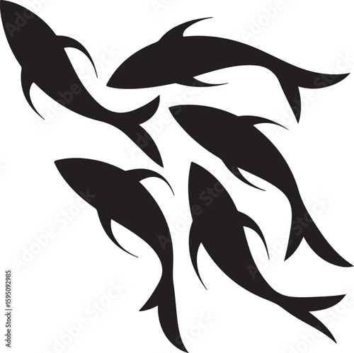 © mohammad, Obraz premium A school of fish swimming together in a dynamic formation silhouette
