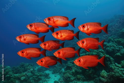 Naklejka premium A school of large-eyed fish swimming near vibrant coral formations