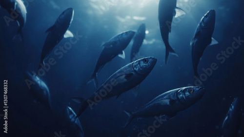 © Vika art, Fototapeta premium A school of mackerel fish.