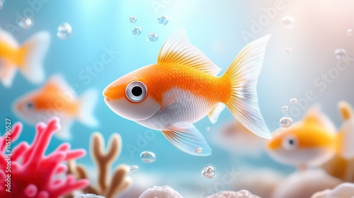 © Rinowz, Fototapeta premium A school of small tropical fish darting among coral and plants, showcasing their vibrant colors and lively movements.