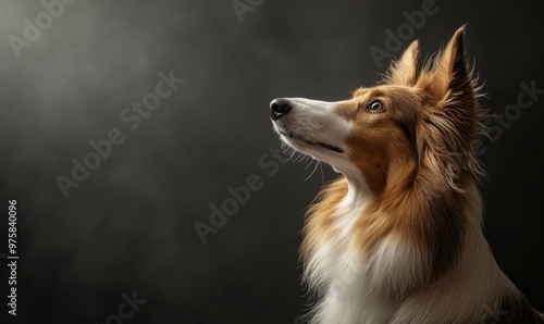 © TheoTheWizard, Naklejka premium A Scottish Collie captured in a studio against a dark background