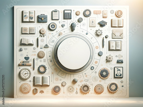 Fototapeta premium A screen with an image of school subjects and a white circle for inserting text in the center