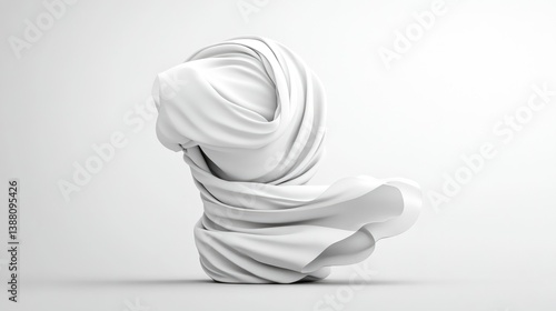 Obraz premium A sculpted form of white fabric is the images focus, its folds creating an abstract shape. The simple composition is set against a plain white background. The high-quality rendering shows smooth surf