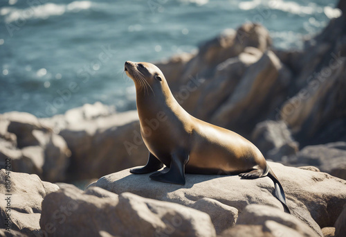 © abu, Fototapeta premium A sea lion basking on the rocks, bright midday