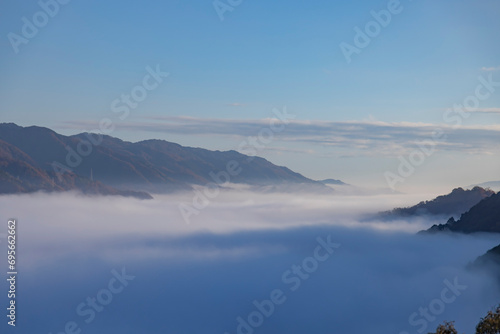 Fototapeta premium A sea of clouds at the top of the mountain in Kyoto