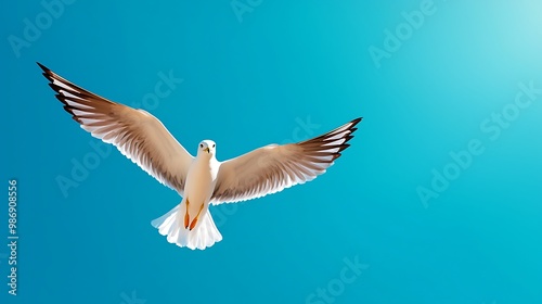 Obraz premium A seagull glides effortlessly through the bright blue sky.