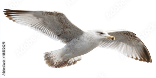 © Rabeya SJ, Fototapeta premium A seagull in flight isolated on white background
