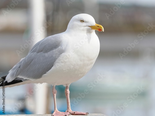 Fototapeta premium A seagull is standing on a dock