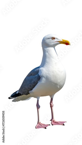 © risma, Fototapeta premium A seagull stands against a white background, its plumage a mix of white and grey