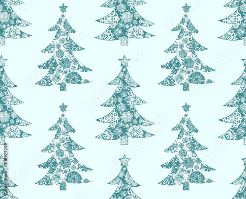 © designer_an, Fototapeta premium A Seamless background with New year tree.