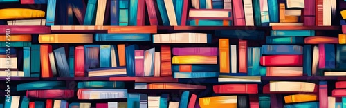Fototapeta premium A seamless colorful pattern resembling a bookshelf, ideal for education,...