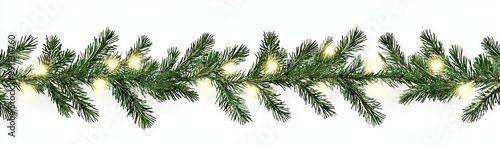 Obraz premium A seamless decorative christmas border with lights and coniferous branches set against a transparent background.