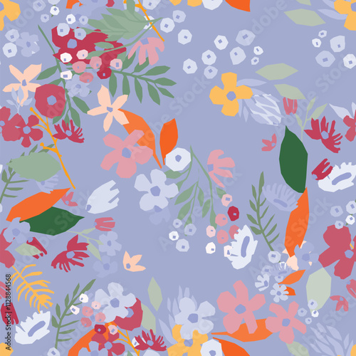 Naklejka premium A seamless floral pattern featuring colorful blooms and leaves on a light blue background, perfect for print, fabric, wrapping and paper