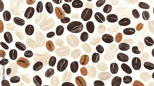 © Galib, Obraz premium A seamless pattern featuring coffee beans in various colors.