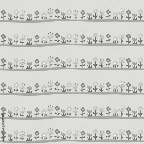© Inkley, Fototapeta premium a seamless pattern of flowers bed in greyscale