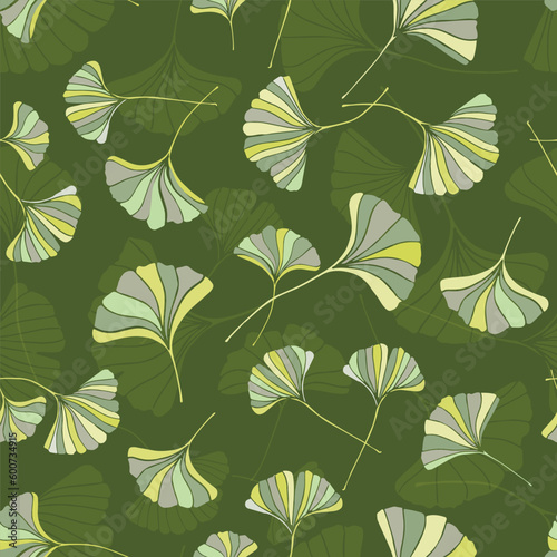 Fototapeta premium A seamless pattern of ginkgo leaves in various green shades