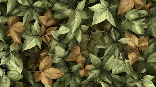 Fototapeta premium A seamless pattern of green and brown leaves, perfect for background designs and textures.