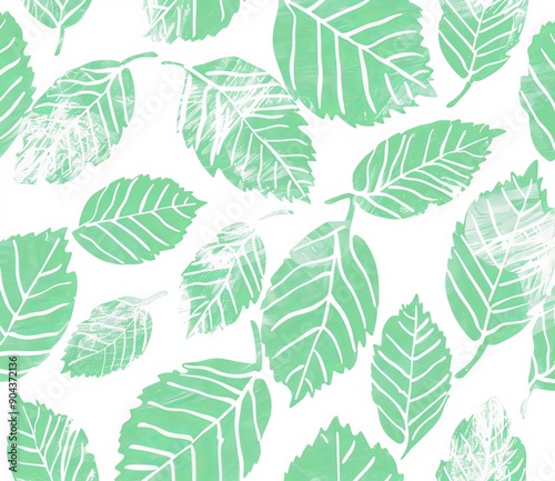 Fototapeta premium A seamless pattern of modern green leaves. A grid of abstract lines on a...