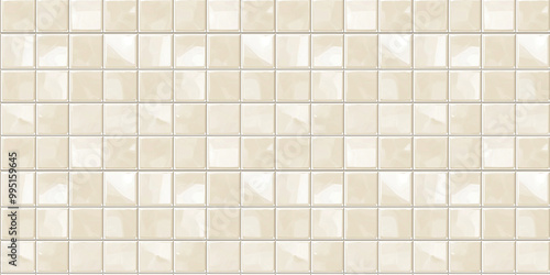 Fototapeta premium a seamless pattern of perfectly square, glossy beige tiles with white grout